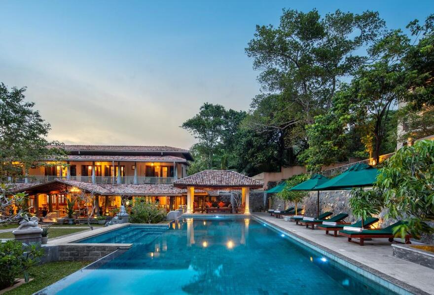 An intimate boutique hotel on a hill overlooking Unawatuna Bay, with cosy guest rooms featuring antique four-poster beds & chic open-air bathrooms. The top-floor dining room boasts striking sea views & offers a selection of fantastic fare & cocktails. An inviting swimming pool awaits. Very trendy.