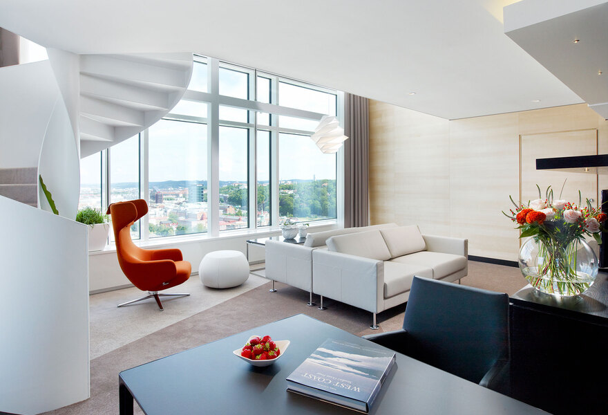 • The Upper House is a luxury hotel situated at the tiop of Gothia Towers. Penthouse suites have modern interiors, plus there's a glass bottomed swwimming pool, great restaurant and amazing views over the city.