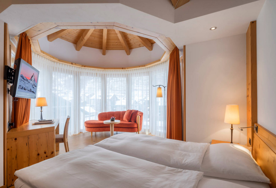 Friendly family-run hotel with stunning views of Matterhorn. Warm and homely, wood clad rooms with crisp white linen and cosy living areas. Exceptional value for money and flexible accommodation options, including a two bedroom apartment, makes this an ideal choice for families and groups.