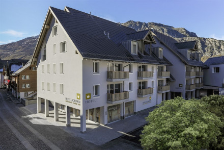 • Hotel Crown features 20 spacious rooms, many with balconies, blending alpine style and modern comfort. Guests enjoy a central location, on-site dining, a cosy lounge, and easy access to nearby shops, cafes, and mountain trails.