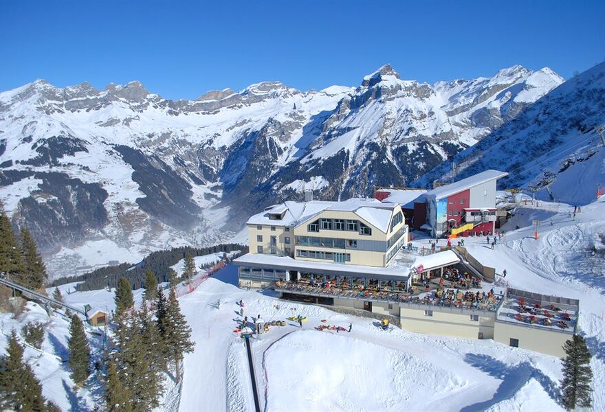 Contemporary hotel with outstanding views. Guestrooms are modern, with exposed stone walls, large bathrooms and minimal fuss. Take in the vista of Lake Trübsee from the sun terrace or relax after a day on the slopes in the sauna. Self-service restaurant and a jolly bar. Very good value.