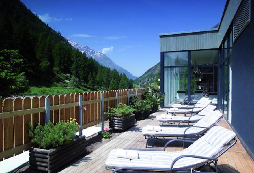 Ein 5-Sterne-Hotel im alpinen Stil in der schönen Stadt Saas-Fee. Die Zimmer verfügen über Holzvertäfelungen, bequeme Betten, Badewannen und einen herrlichen Blick auf die Berge. Entspannen Sie sich am Kaminfeuer in der Piano-Bar oder lassen Sie sich im luxuriösen Spa verwöhnen. Sie haben die Wahl zwischen drei Restaurants und einem Hallenbad. Schick in den Bergen.