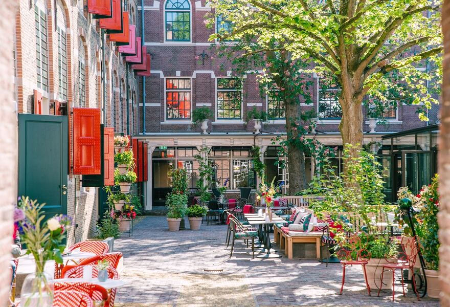 A boutique stay in the heart of Gouda, set in a former orphanage with centuries of history. The decor leans into Art Nouveau-inspired ceramics with a playful modern twist. Home to a refined fine-dining restaurant and a laid-back cocktail bar. Stylish, surprising, and quietly indulgent.