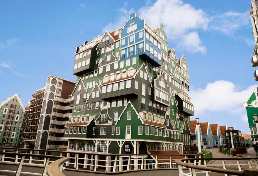 An architecturally unique hotel boasting a striking façade inspired by traditional Zaan houses. Inside, the modern rooms reflect local heritage, complete with contemporary art and furnishings. It boasts a wellness club, swimming pool, and the inviting Puur Saen restaurant and bar. A visual delight.