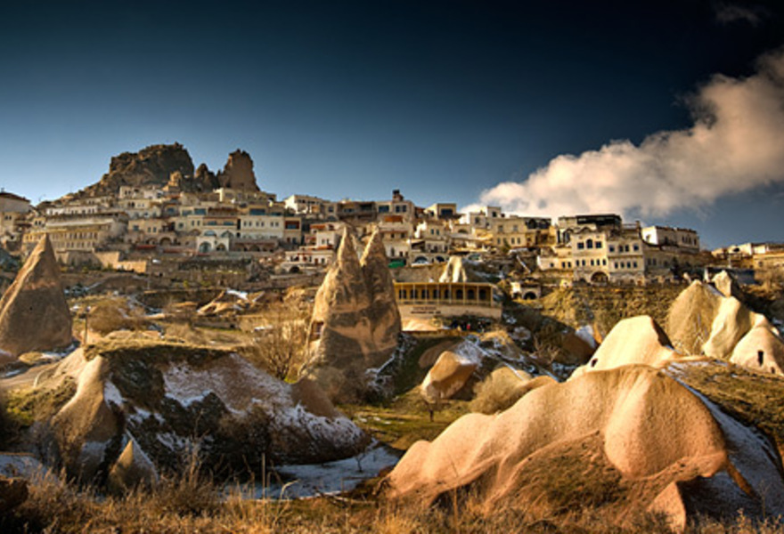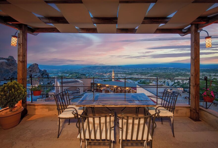 A charming hotel in Uchisar, offering breathtaking views of Cappadocia's valleys and snow-capped Mount Erciyes. The interior blends traditional design with historical antiques, creating a cosy atmosphere. Enjoy a buffet breakfast, a terrace bar, and expert local tour assistance. A peaceful retreat.