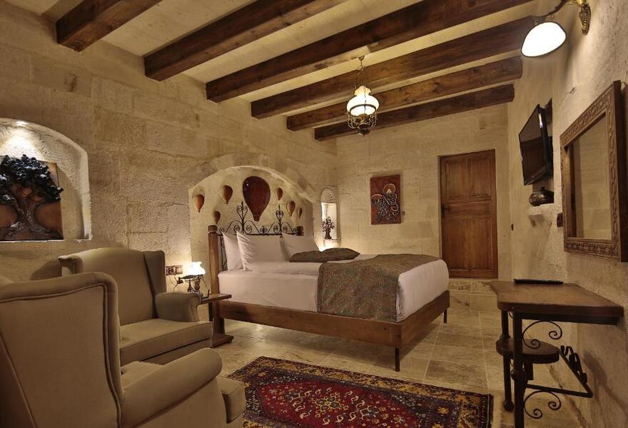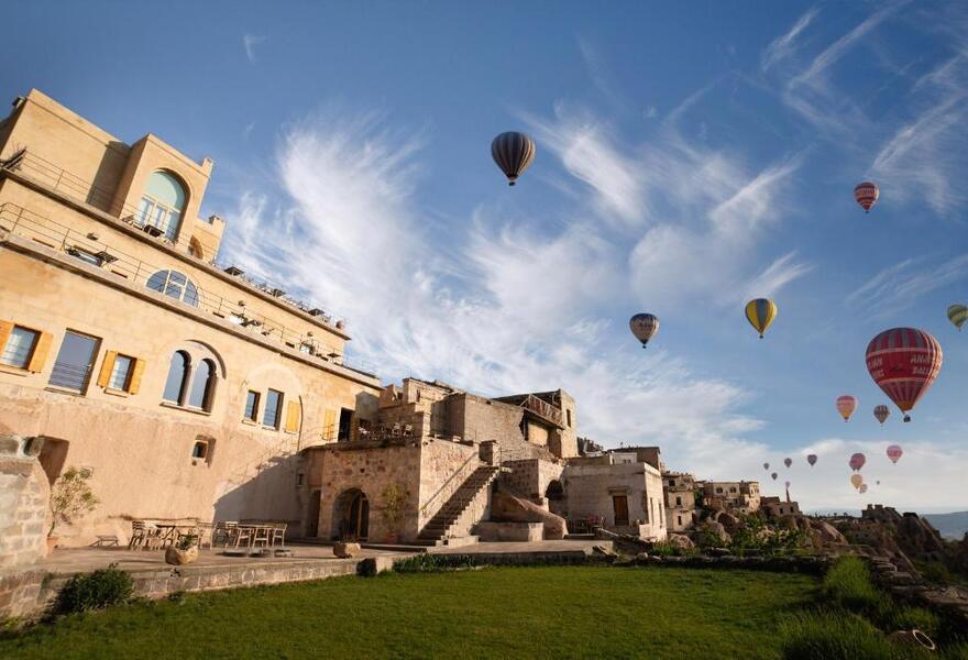 A luxury hotel in the heart of Cappadocia offering a unique blend of comfort and history. Rooms are carved from rock with traditional Turkish motifs, providing a cosy yet elegant atmosphere. Enjoy fine dining, regional wines, and a wealth of cultural experiences. A truly unique stay.