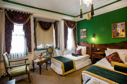 An elegant base for exploring the sights of Sultanahmet. Fantastic views over the city and sea from the roof top terrace. Rooms festure parquet floors and cream furnishings dotted with Turkish artifacts. The triple suites are ideal for groups or families.