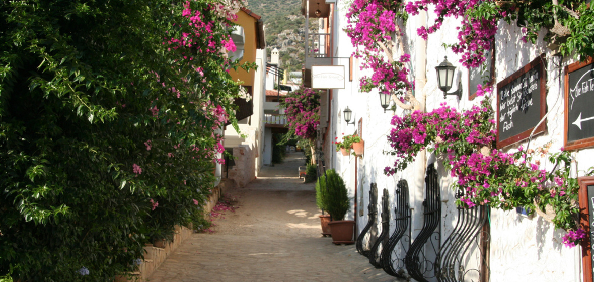 Kalkan is an enchanting little old town in one of the most beautiful positions on the spectacular Lycian Coast. Turquoise, a French word, may have been created especially to explain the gorgeous colour of the Mediterranean sparkling here and many of the best places to stay in Kalkan enjoy just such a view. Meandering is how you will be exploring the steep narrow lanes of this resort town as they tumble between whitewashed houses towards the Med.