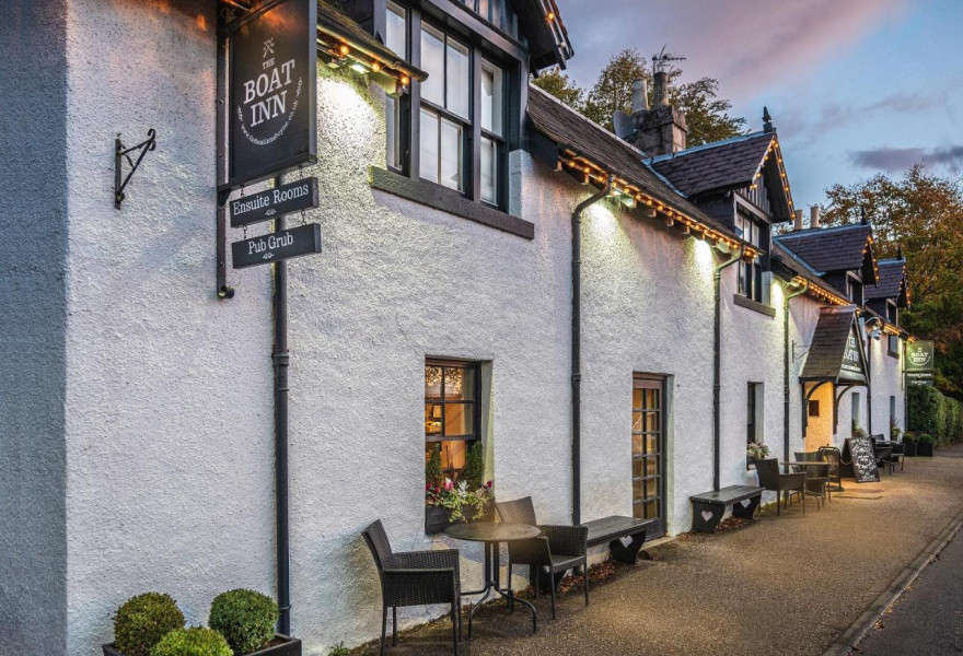 • Aboyne’s The Boat Inn is a totally charming, traditionally looking village inn with 16 surprisingly contemporary rooms and suites, a cosy pub and restaurant serving hearty pub grub. The fanciest of the rooms have free-standing baths under pitched roofs, and a private balcony or terrace. Downstairs in the pub guests will find roading fires in traditional stoves, and a great collection of ales. Perfect for walkers, golfers, mountain bikers and fisher folk.
