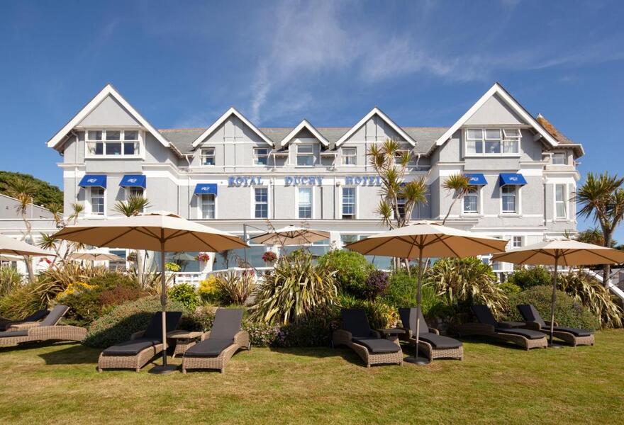 A luxury hotel overlooking one of Cornwall's most beautiful bays. Rooms are light and airy with retro furniture and magnificent views. With a wide choice of dining options, a full service spa, and the beach on the doorstep - this is suited to both couples and families.