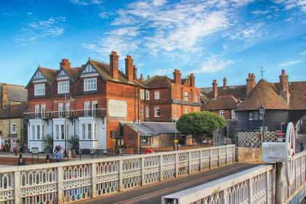A comfortable hotel overlooking the river with large elegant bedrooms, brasserie, bar and terrace. Ideal for golfers, walkers, families and anyone looking to visit the historic town of Sandwich in Kent