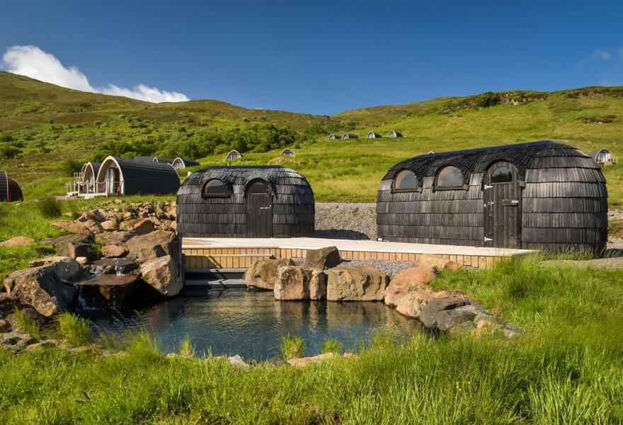 Ein magischer Rückzugsort, der in der Nähe von Portree ein herzliches Willkommen bietet. In den gemütlichen Hütten, die über die zerklüftete Landschaft verstreut sind und eine spektakuläre Aussicht bieten, werden sich die Gäste wie in einer Kokonhülle fühlen. Es gibt moderne Annehmlichkeiten wie Fußbodenheizung und Klimaanlage sowie ein Restaurant und eine Whisky-Bar. Das ultimative Outdoor-Erlebnis.