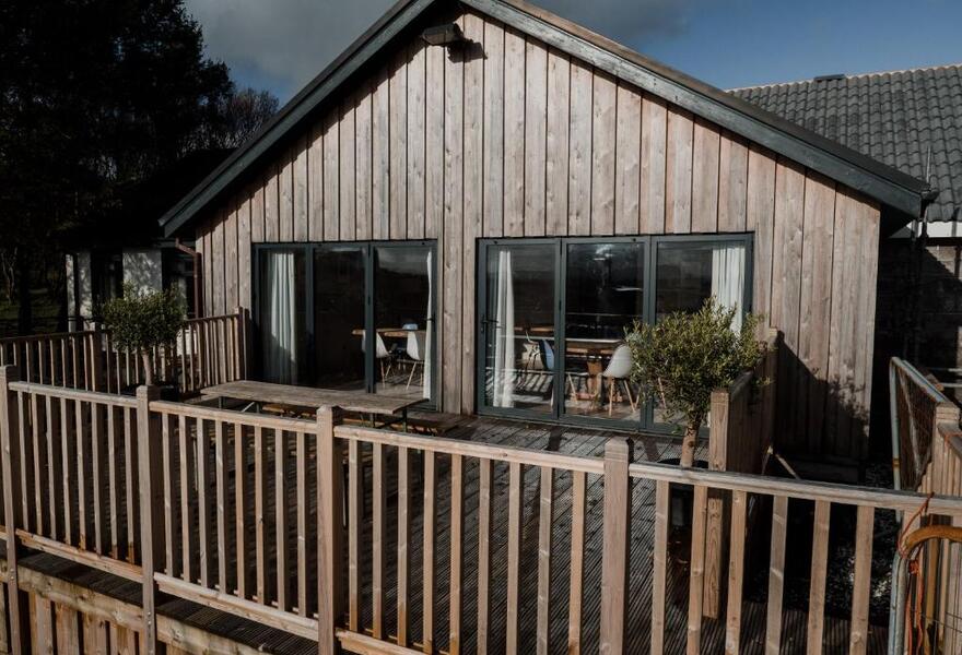 Ein rustikales Hotel an der Nordwestküste der Isle of Skye mit Blick auf den See und die Roag Peninsula. Die Inneneinrichtung ist eine Mischung aus Scandi-Chic und modernem schottischen Stil mit gedeckten Grautönen und Wolldecken. Ein gläserner Raum beherbergt das entspannte Restaurant, das Speisen aus lokaler Produktion serviert. Ein idyllischer Zufluchtsort im Hochland.
