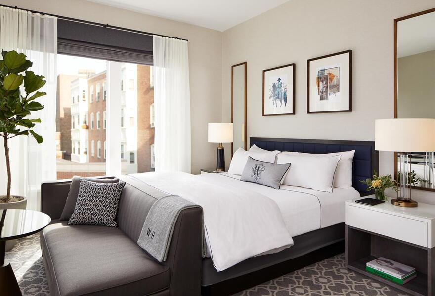 Eine Auswahl an Studios und Suiten mit einem Schlafzimmer in Bostons Wohnviertel Beacon Hill. Die Einrichtung ist ganz im Sinne der Boutique: charakteristische Wände, Samtkissen und ein lustiger Mix aus antiken und modernen Möbeln. Voll funktionsfähige Küchen und Essbereiche machen dieses Hotel zu einem idealen Ort für längere Aufenthalte in der Stadt.