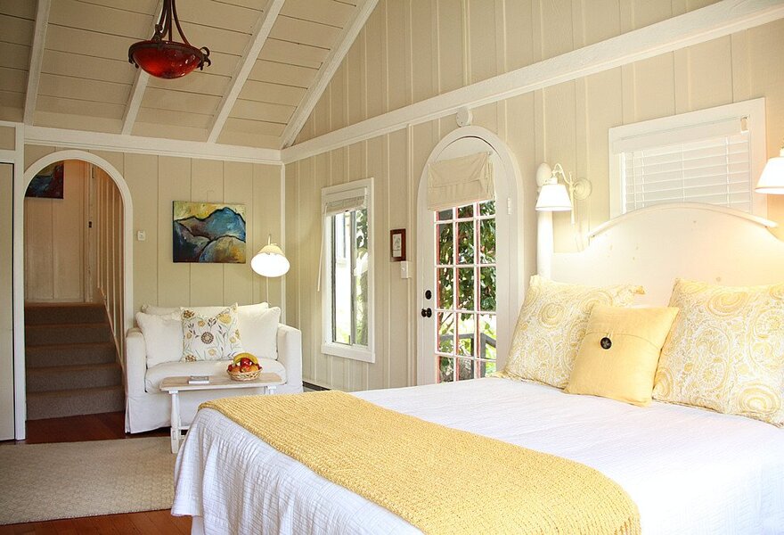 A charming inn set in the heart of Carmel right next to the Plaza. The cottages are spacious and stylish with ivory hues and splashes of yellow, cosy fireplaces, large tiled bathrooms and stunning views of the garden. Relax on the sit-out terrace. The perfect location for exploring further afield.