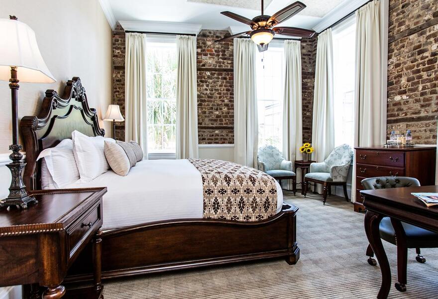 Prime location in the historic district, a 19th Century inn with classic interiors and fine dining at Peninsula Grill. Spacious rooms offer four-poster beds, private sitting rooms and bathrooms. Dine al fresco, or explore the city market for many other options. A historian's dream stay.