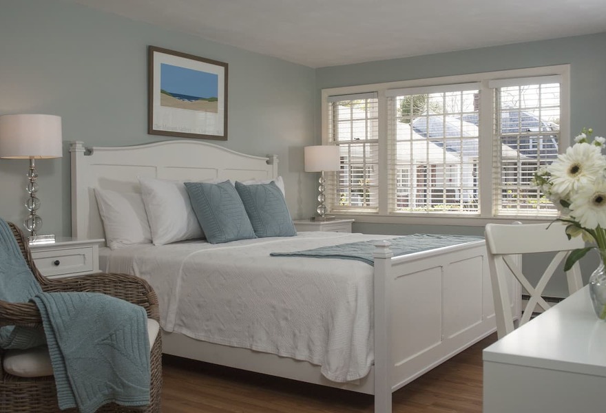 Cape Cod inn and cottage walking distance to the sea. Recently remodelled rooms feel fresh and modern with a soft take on the classic nautical colour palette. Enjoy pool, gardens, BBQs and sit-out furniture. Stand-alone Beach Cottage is fantastic; a private path leads to a stunning beach in minutes.