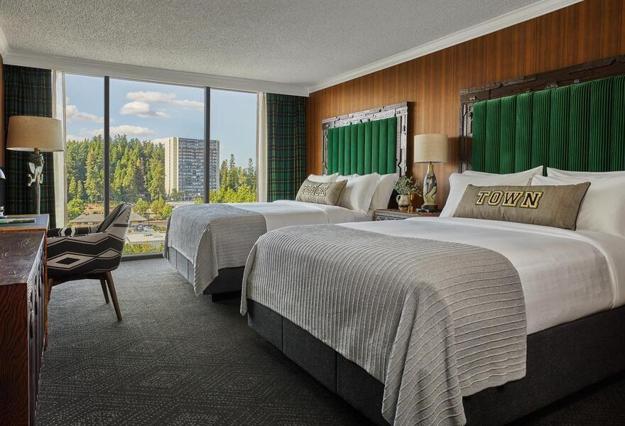 • Graduate Eugene has a cool, retro feel, with wood panelling, green accents and mid-century furnishings. Expect gorgeous views, a buzzing restaurant and expansive meeting spaces, as well as a Topgolf Swing Suite. Great for students, families and those visiting university students. A fun, fresh hotel inspired by the city's 'TrackTown' reputation.