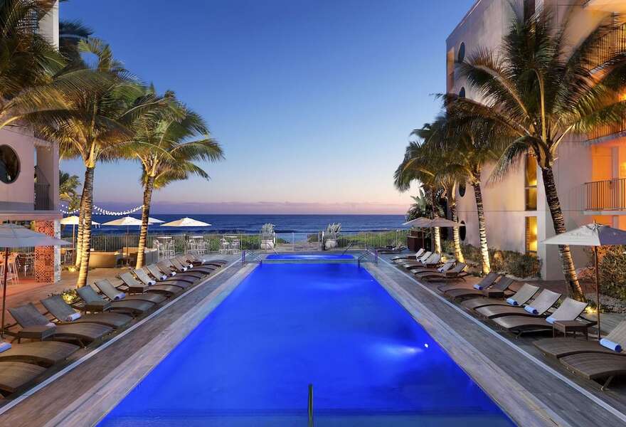 A luxury boutique hotel in the heart of downtown Palm Beach. Vintage rooms feature green and pink colour schemes, floral curtains and potted plants. Delicious American cuisine and handcrafted cocktails at Swifty's. Lounge by the pool, play cornhole or take a cruiser down to the beach. Fabulous!