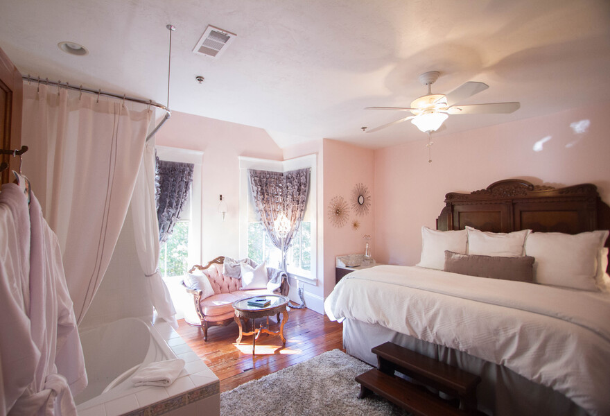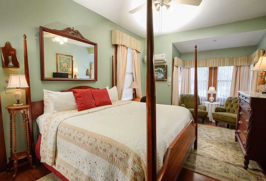 A charming victorian B&B in the heart of the Historic District in Gainesville. Rooms are spacious and traditional with antique furnishings, fireplaces and stand-alone tubs. Enjoy a delicious homemade gourmet breakfast. With a large porch surrounded by mature gardens, this is a tranquil stay.