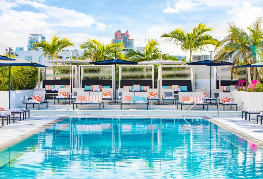 A youthful, trendy property with poolside lifestyle. Interiors offer a neutral colour palette, sun-bleached woods, glass and metal accents, and big windows for a naturally-lit beach-chic vibe. Snack on sushi at Sushi Couture or join the Miami glitterati at the playful Sugar Factory Brasserie.
