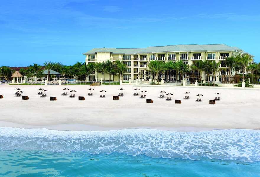 A luxury family-friendly beachfront resort. Spacious rooms with white linens with muted seafoam accents, rattan furniture, balconies overlooking the sea and walk-in showers. Laze on hammocks on the private beach and enjoy sunset cocktails. Superb facilities and casual dining. A seafront winner!