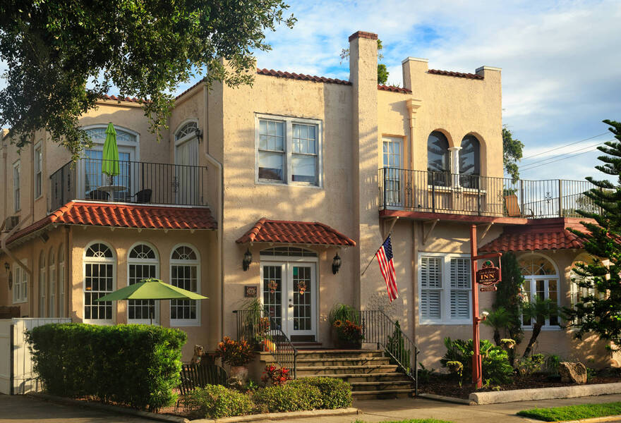 Elegant B&B close to downtown St Augustine. Romantic rooms decorated in soft shades, some with balconies, luxury whirlpool tubs or spa-jet showers. Complimentary wine, freshly-baked cookies and snacks served in the comfortable sitting room or gorgeous terrace. A relaxing stay full of Southern charm.