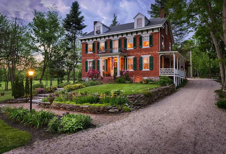 Traditionelles Fünf-Sterne-Hotel im Zentrum von Gettysburg mit einem Restaurant, einem Pub und einer Kunstgalerie. Die Zimmer sind in einem hübschen historischen Gebäude aus rotem Backstein untergebracht und verfügen über klassisches Dekor, Himmelbetten und hohe Decken; einige sind mit Whirlpools ausgestattet. Ambiente der alten Schule mit modernen Annehmlichkeiten.