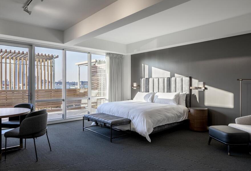 Stylish loft-style living in the heart of downtown. Minimalist monochrome suites offer incredible vistas over the urban landscape; enjoy views from large balconies and the rooftop terrace. With kitchens, dining and living areas, this is an ideal choice for long stays or independent travellers.