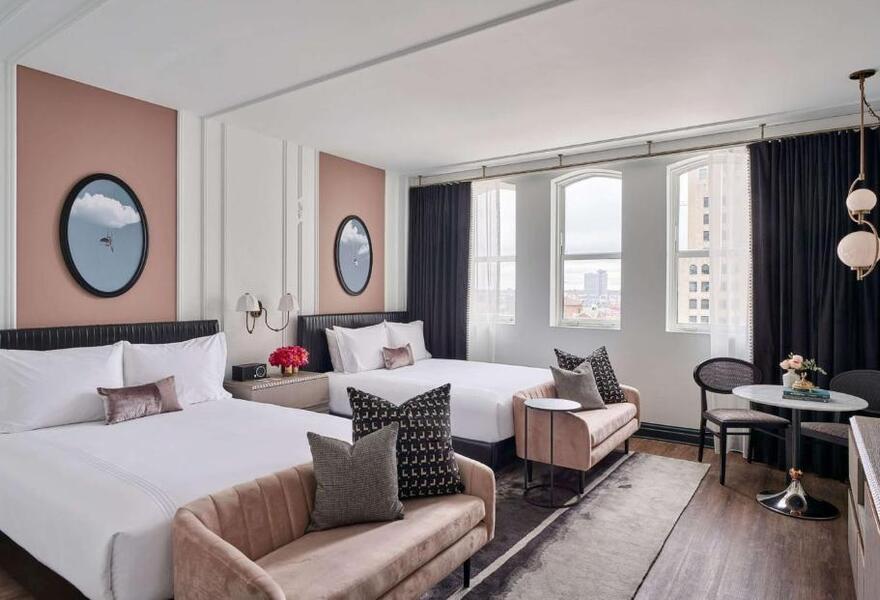 Historic landmark turned sleek hotel in the downtown entertainment district. 1920s-inspired rooms mix classic style with clever twists. Loft suites add opulence with four-posters & city views. Multiple dining options showcase regional fare and there's an onsite nightclub. A plush stay.