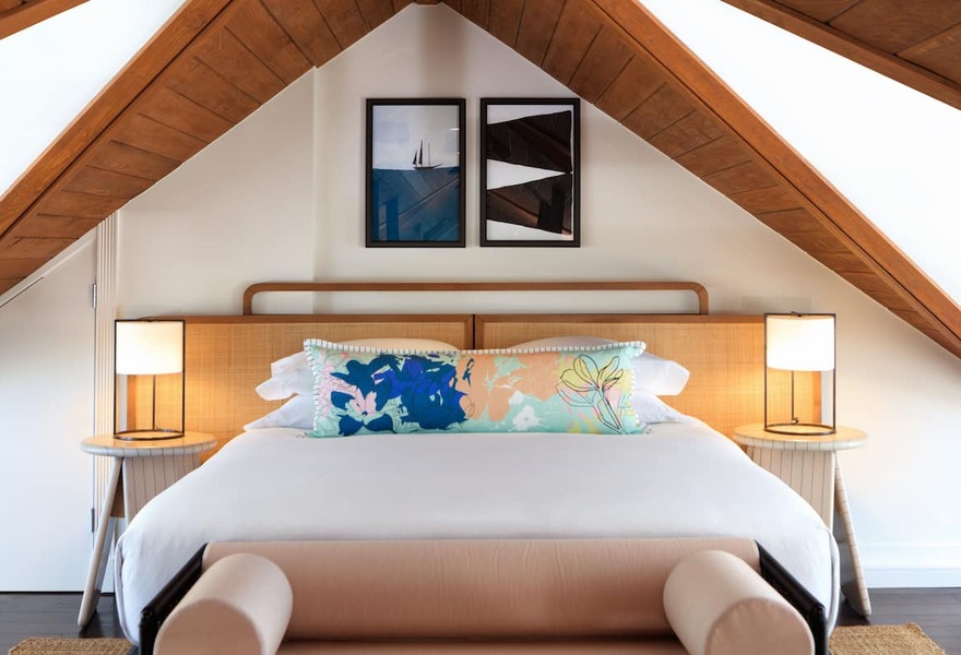 Ein schickes floridianisches Anwesen nur wenige Schritte vom Strand entfernt. Die eleganten Zimmer sind weiß auf weiß, mit hellen Holzmöbeln und Farbtupfern durch hübsche weiche Möbel. Der riesige Pool ist wie geschaffen für Tage in der Sonne. Eine lebhafte Poolbar und ein Imbisswagen sorgen für die nötige Portion Coolness. Glückseligkeit.