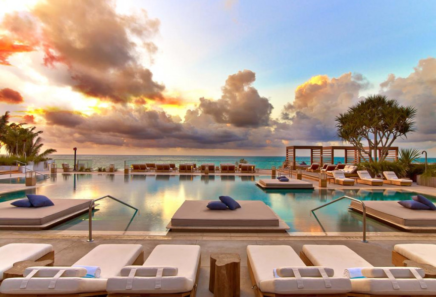 Un bâtiment Art déco des années 1950, situé sur la plage de South Beach. Les chambres spacieuses sont décorées dans des tons bleu océan, or chaud et café riche, avec des vues incroyables sur l'océan et la ville et des salles de bains en marbre luxueuses avec des baignoires indépendantes. Ce complexe familial propose des restaurants en bord de mer, un accès à la plage, une piscine, des jeux, un spa et un club pour enfants.