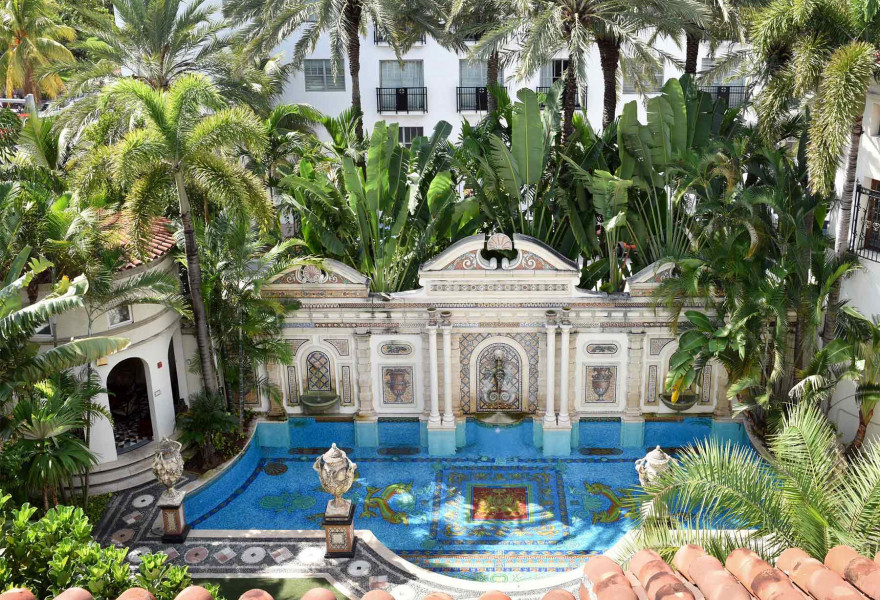 La maison de Versace transformée en boutique de luxe sur la célèbre Ocean Drive, à Miami Beach. Il s'agit d'un trésor de meubles faits main remarquables, de vitraux, de peintures murales, de design exubérant et de tout ce qu'il y a de plus extravagant ! Sans parler de la piscine en mosaïque dorée et de la salle à manger ornée du restaurant. Spectaculaire !