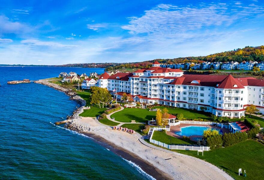 A historic landmark building and the only hotel within Mackinac Island State Park. Chic rooms, decorated in pastel hues, are light and airy and many have epic sea views. Well equipped, there are a choice of two restaurants and bars, an indoor pool, and hot tubs. An idyllic coastal escape.