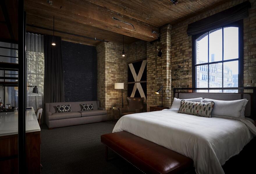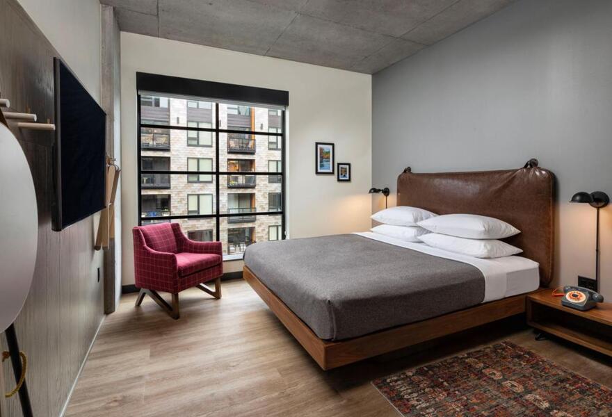 Historic warehouse transformed into a trendy North Loop boutique hotel. Industrial-chic interiors blend exposed brick, timber and metal touches. While Scandinavian influences extend to the restaurant & rooftop sauna. Sleek rooms have an urban haven feel. A luxe option and a local favourite.