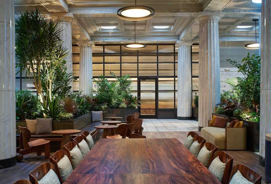 Playful hotel located in iconic Art Deco downtown tower. The vibe blends colourful contemporary style with inspiration from the past; think gold touches, glam feel & a speakeasy bar. Signature steakhouse, nightclub & observation deck make this great for after hours. Pinnacle of urban cool.