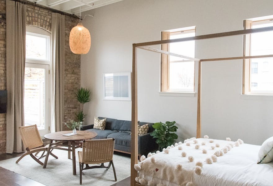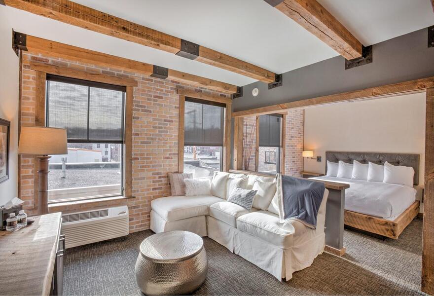 This boutique hideaway is set on the banks of the St Croix in Minnesota. Built on the site of a historic brewery, beautiful architectural details thread throughout the property, with part-exposed stone contrasted against pastel walls and contemporary art. A uniquely stylish base for local exploring.