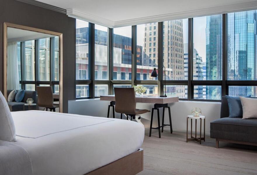 Modern downtown luxury hotel. Rooms and suites channel simplistic elegance with modern interiors and artwork to match. 24-hour gym with the latest equipment, an Italian restaurant and all-day dining options make this the perfect place to rest your head, whether you are staying for work or play.