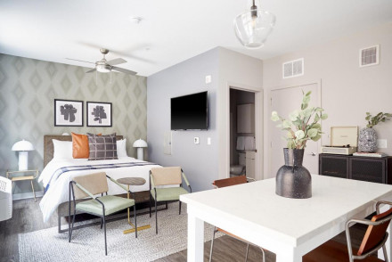 Self-service apartments in happening Uptown district. Light-filled one-bedroom suites decorated with sixties-inspired furnishings, quirky wallpapers & cosy touches all come with full kitchens & living areas. Share access to an expansive rooftop, gym & communal lounge. Cool yet practical city base.