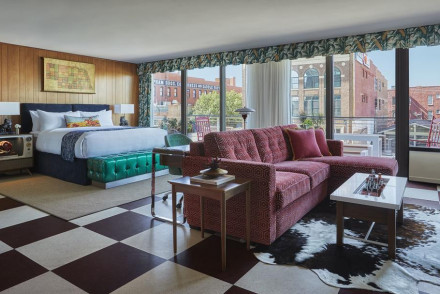 A modern revival of a hotel famed during the roaring twenties in Omaha's trendy Blackstone district. Cool yet classic interiors mix Midwestern themes with European style and glamour. Great facilities including a resort-style pool, garden roof terrace and buzzing bars and restaurants. A hip choice.