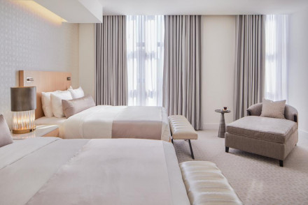 A chic centrally-located hotel offering stylish modern design and a hip cocktail bar. Elegant rooms and suites feature simple modern furniture, cool grey hues, and plush bedding. The lively restaurant serves up regional classics. Convenient and luxurious, well suited to business or leisure.