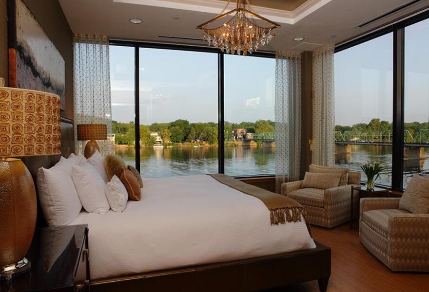 Das am Wasser gelegene Gasthaus befindet sich in einem Bahnhof aus dem 19. Jahrhundert am Ufer des Delaware River. Jahrhundert am Ufer des Delaware River. Das Hotel verfügt über ein großartiges Restaurant und eine Terrasse am Flussufer, die geräumigen Zimmer und Suiten sind im klassischen, modernen Stil eingerichtet; viele bieten einen atemberaubenden Blick und einige haben einen Kamin. Das Hotel bietet erstklassige Einrichtungen für Veranstaltungen.