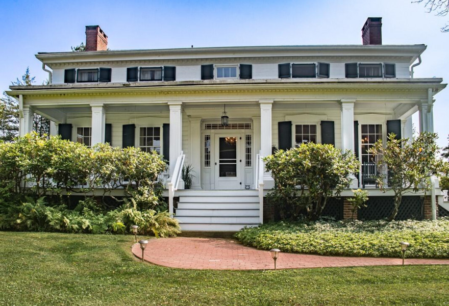 Koloniales Bauernhaus im Greek Revival-Stil, umgeben von 800 Hektar Ackerland. Die viktorianische Einrichtung passt zum Anwesen; genießen Sie die acht lodernden Kamine, die geschwungene Treppe, die Kiefernfußböden, die Säulenveranda und die Veranda aus Backstein. Die großen Zimmer sind traditionell gemütlich und bieten einen Blick aufs Land. Perfekt für einen erholsamen Kurzurlaub.