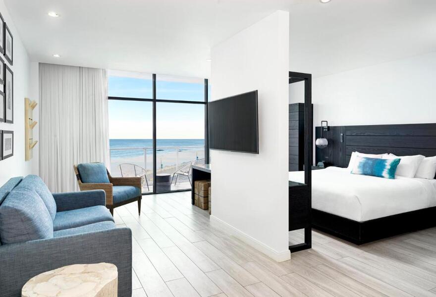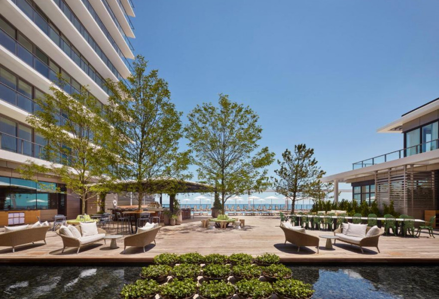 Entfliehen Sie in die stilvolle Oase von Asbury Park, nur einen Block von der lebhaften Strandpromenade entfernt. Dieses luxuriöse Strandhotel bietet einen ruhigen Pool, schicke Zimmer mit Meerblick und ein Spa. Lassen Sie sich von der modernen amerikanischen Küche verwöhnen, genießen Sie die Bars am Strand und erkunden Sie die örtliche Kultur mit Leichtigkeit. Hamptons-Eleganz trifft auf Umweltbewusstsein.