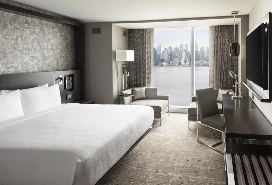 Zeitgenössisches Luxushotel am Ufer des Hudson River mit unglaublichem Blick über New York City. Gepaart mit minimalistischem Glamour dominiert hier eine schlichte Einrichtung, eine metallische Farbpalette und raumhohe Fenster. Auf dem Panoramadach befinden sich ein Restaurant, eine Bar und Veranstaltungsräume. Elegantes Stadtquartier.