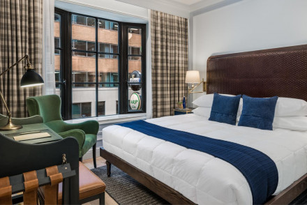 This boutique hotel sits in the heart of New York's Times Square. Drawing on the style of a Dublin townhouse, guestrooms have pastel walls set off by brass fittings and royal blue accents, plus art inspired by Ireland. Have pre-theatre dinner at the restaurant or relax in the bar after sightseeing.