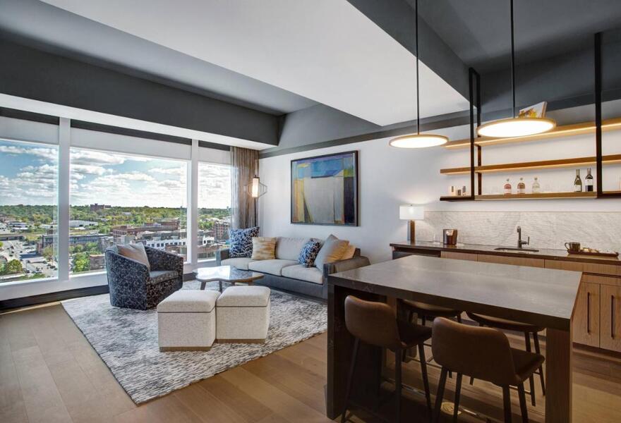 A contemporary hotel in a prime downtown Omaha location. Interiors are smart and sophisticated, with modern decor and a luxurious feel. Dynamite Woodfire Grill serves high-end American cuisine and a range of craft cocktails, plus you'll find the largest outdoor terrace bar in town. A chic city stay.