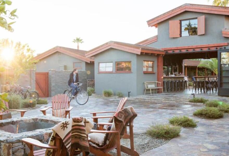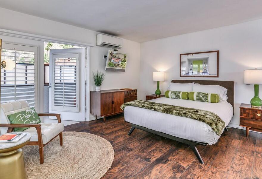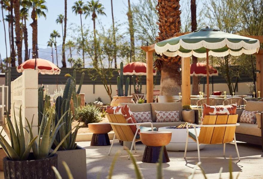 Family owned neighborhood feel hotel in Uptown Palm Springs great for lazy days by the pool and comfortable nights under Italian cotton sheets. White walls with modern art, this hotel has something of the Med about it. Restaurants like Cheeky's on the block. Exploring by bike or by car is possible.