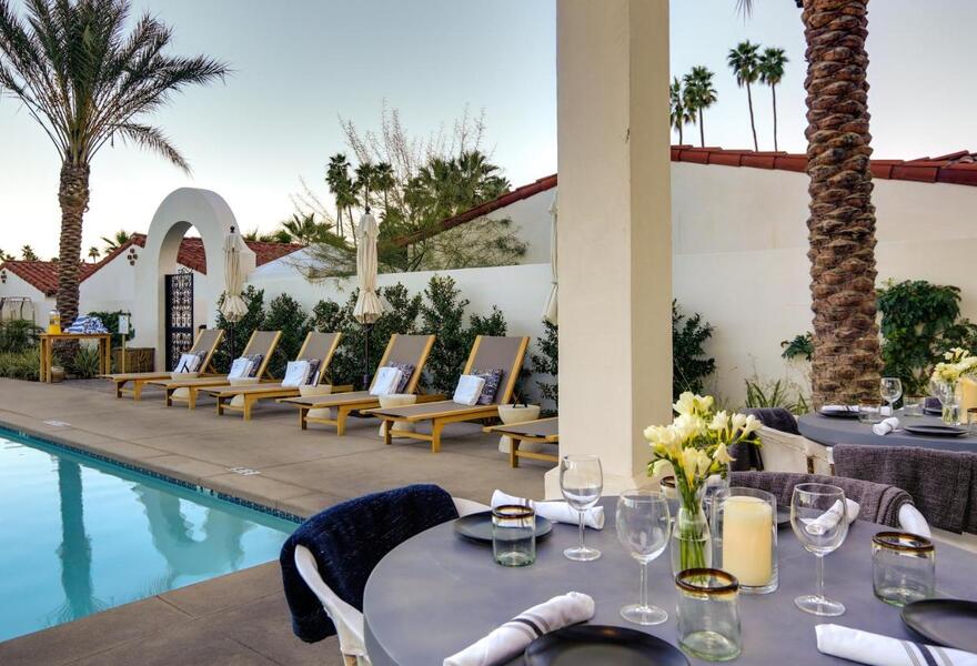 Traditional and intimate boutique with views of the San Jacinto Mountains. Relax by the pool or spoil your self with a private massage. The rooms are classic and comfortable, with fireplaces and gorgeously deep bathtubs. Al-fresco gourmet breakfast is a delicious way to start the day.