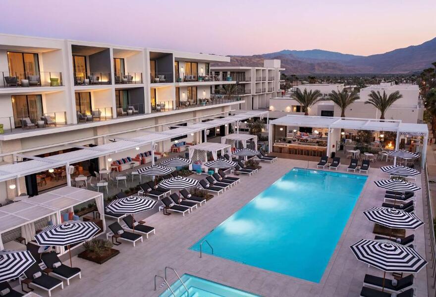 This stylish hotel in downtown Palm Springs offers a blend of mid-century charm and contemporary luxury. The airy, natural hues and outdoor spaces complement its chic, bungalow-inspired rooms. With two pools, a signature restaurant, and a Napa Valley tasting room, it's a perfect desert retreat.